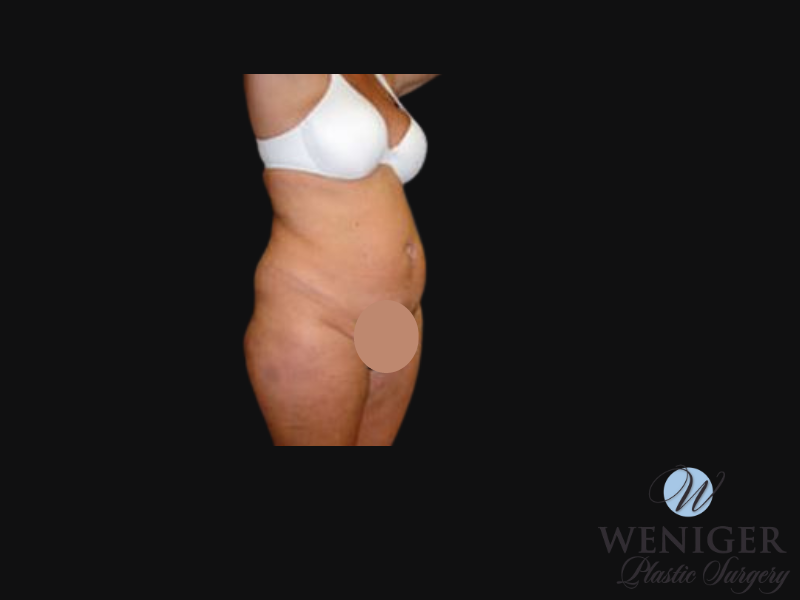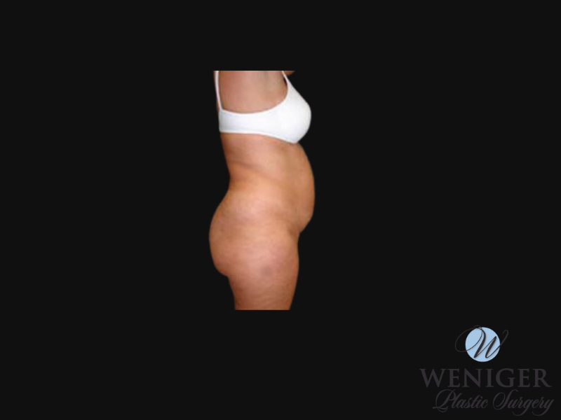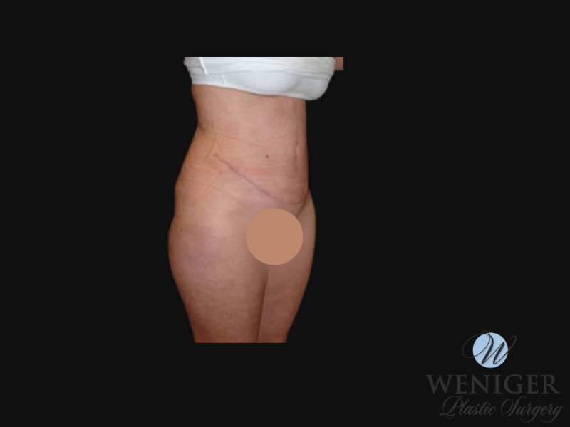 This patient wanted to address the excess fat to her abdomen and muscle diastasis. Dr. Weniger performed an abdominoplasty with muscle plication to achieve these results.