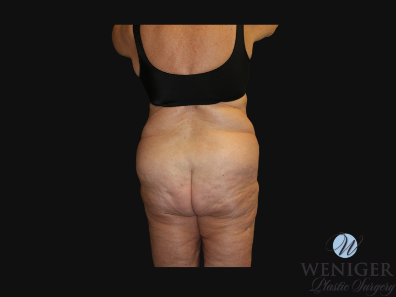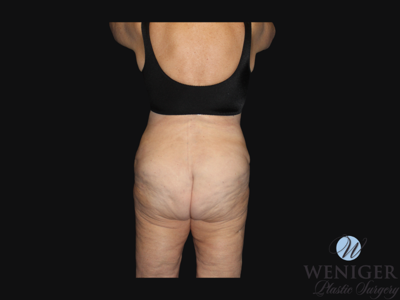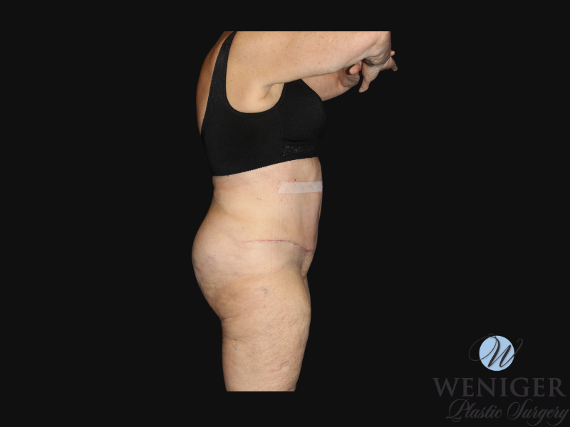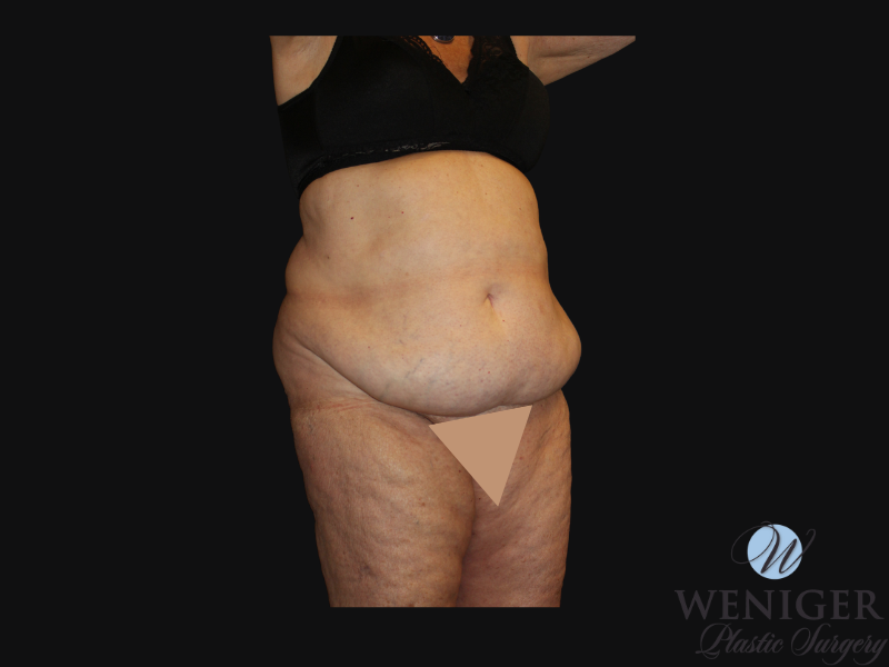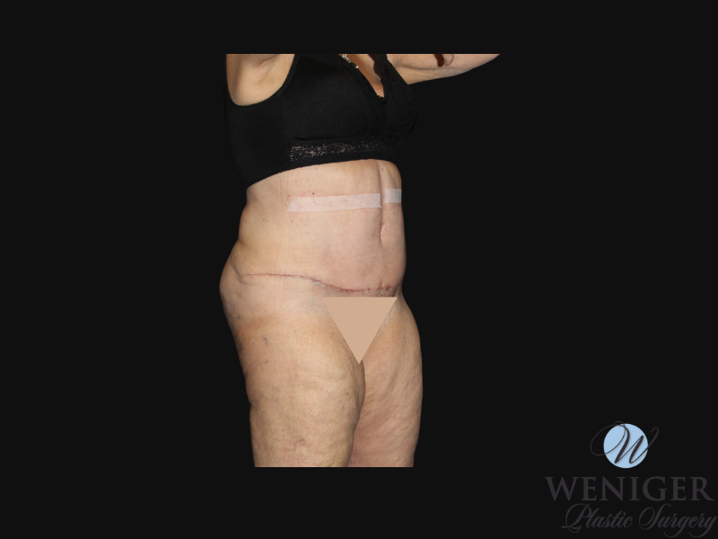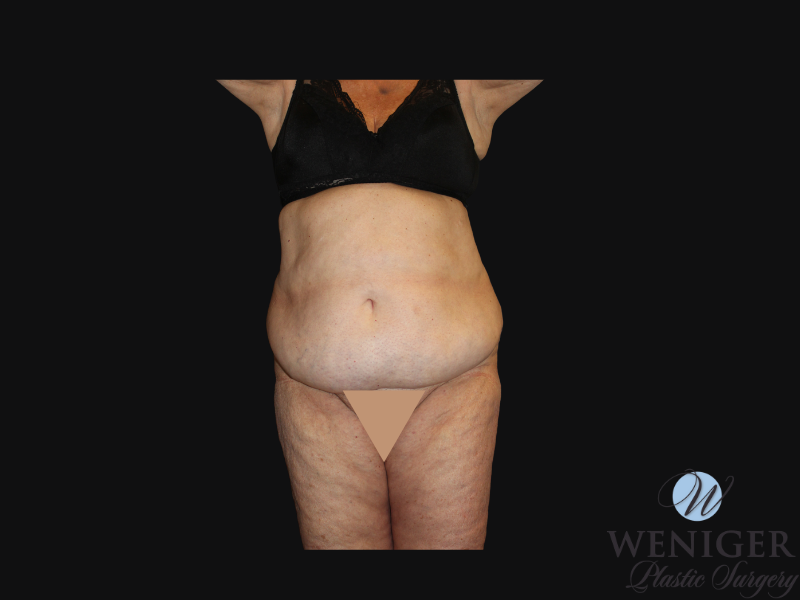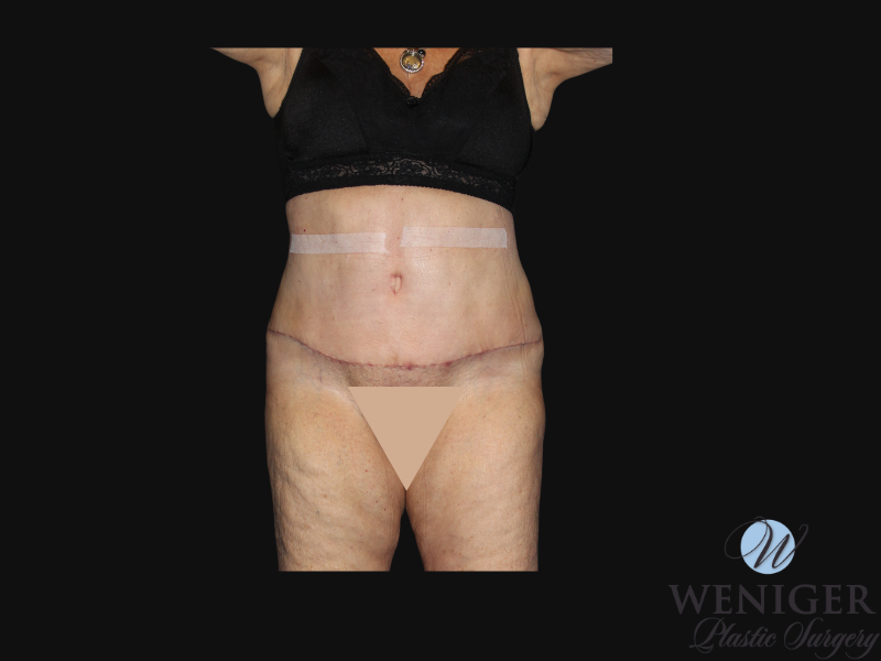 This 68 year old patient had concerns with excess skin and fat to her abdomen along with diastasis recti (separation of the rectus abdominis muscles). Dr. Weniger performed a tummy tick with liposuction with muscle plication.