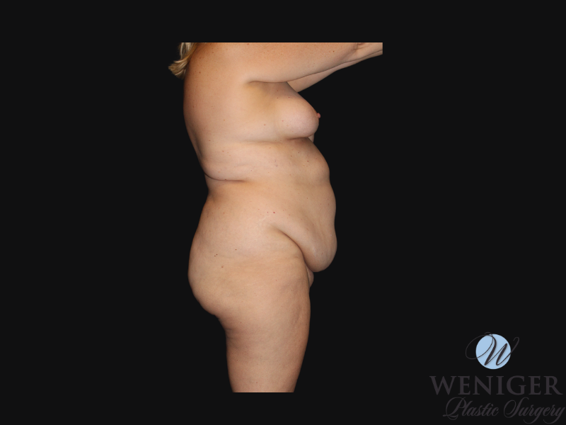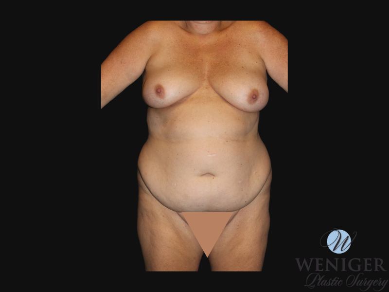 This 49 year old patient wanted to address the excess fat and skin to her abdomen, so Dr. Weniger performed an abdominoplasty to address her concerns.