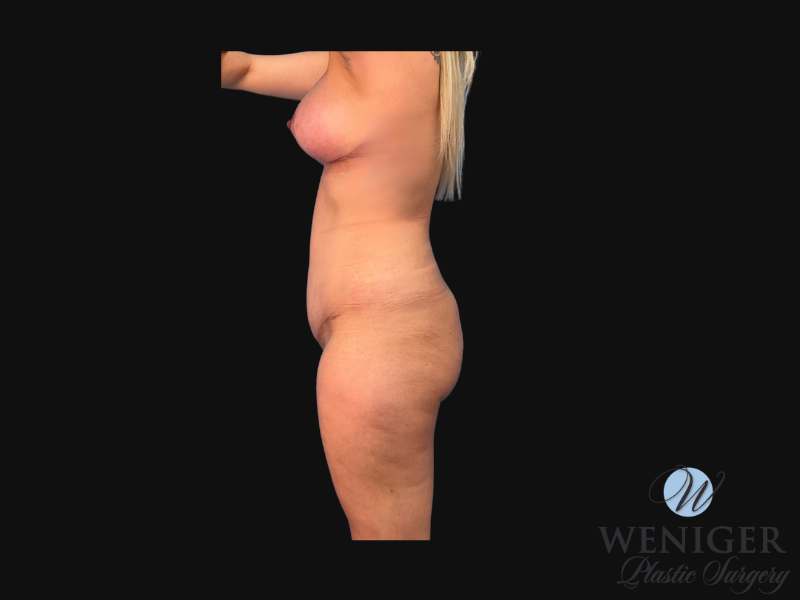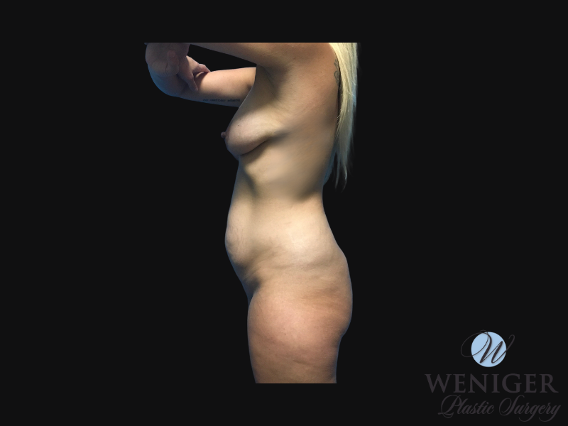 This 34 year old mom wanted to address the loose skin and excess fat to her abdomen after childbearing, Dr. Weniger performed an abdominoplasty with liposuction to address her concerns.