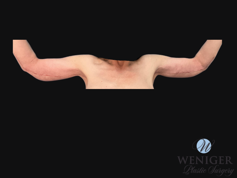 Before Before After After This 57 year old patient lost over 200 pounds after gastric bypass surgery, she had concerns with loose skin to her arms so Dr. Weniger performed a brachioplasty to address her concerns.