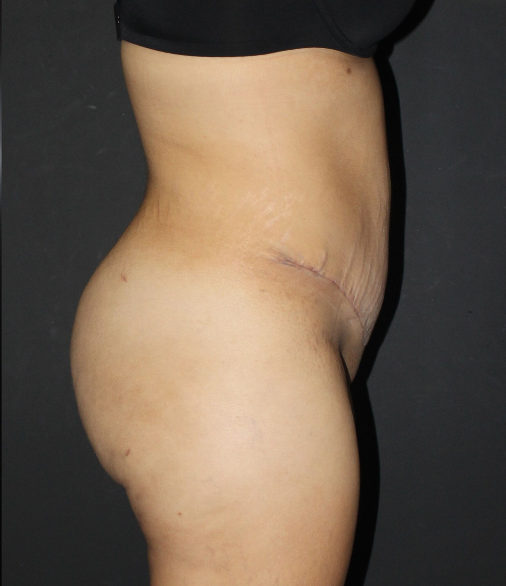This lady in her 20s had concerns with her abdomen after having three children and she also wanted more volume in her buttocks.