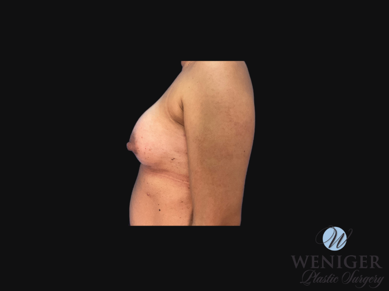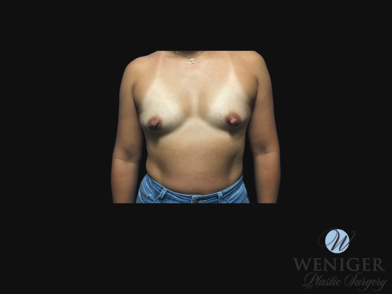 This 39 year old patient wanted more volume and upper pole fullness to her breasts, Dr. Weniger performed a breast augmentation using 325cc silicone implants.
