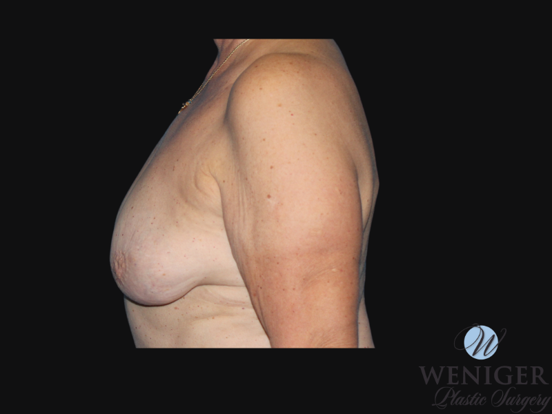 This 63 year old patient had concerns with loose skin to her breasts and her nipple position. Dr. Weniger performed a breast lift to address her concerns.