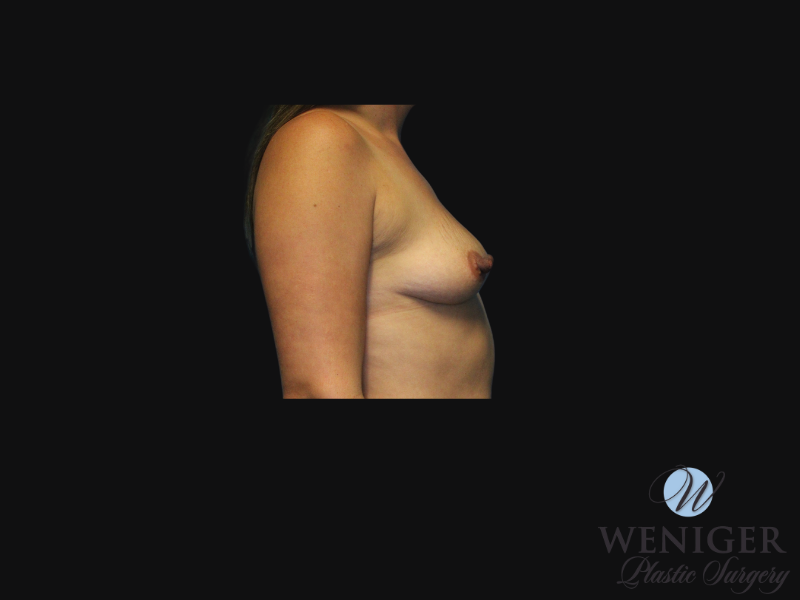 This 37 year old, mom of 4, wanted more upper pole fullness and better nipple placement after breast feeding. Dr. Weniger performed a crescent lift and used 450cc silicone implants to achieve these results.