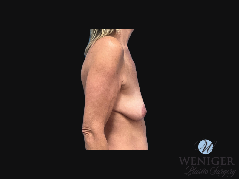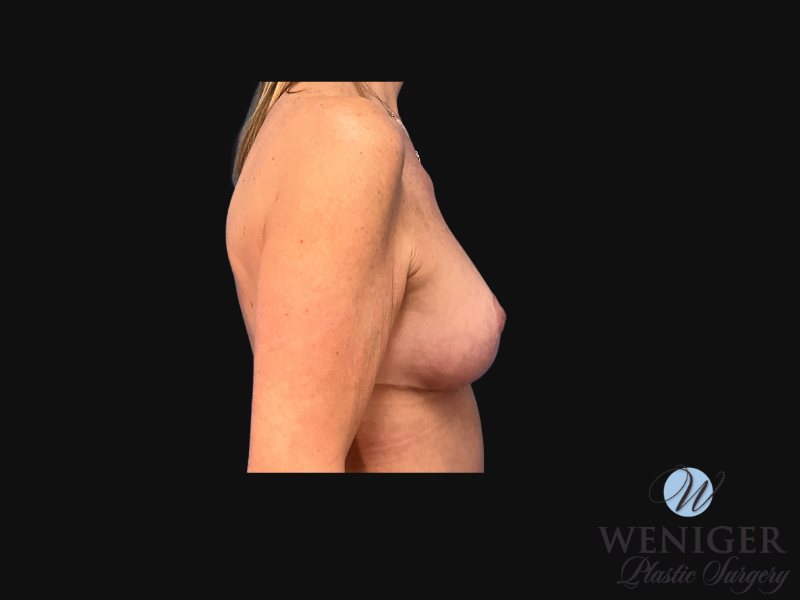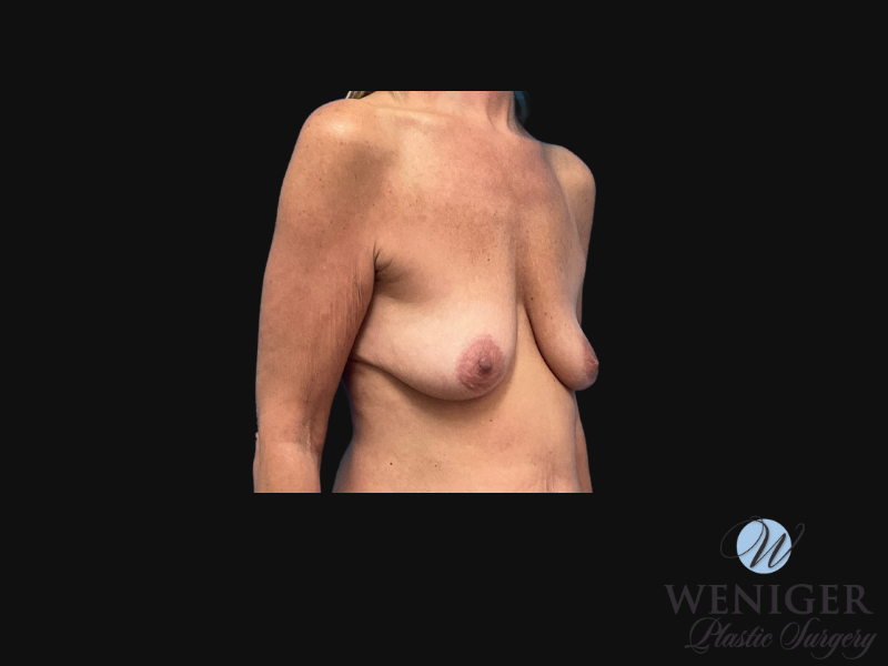 This 48 year old patient wanted to address her lack of volume and upper pole fullness. Dr. Weniger used 255cc silicone implants and performed a mastopexy to achieve these results.