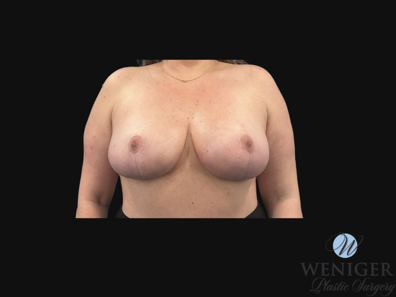 This patient wanted smaller breasts due to back and neck pain, Dr. Weniger performed a breast reduction to achieve her desired results.