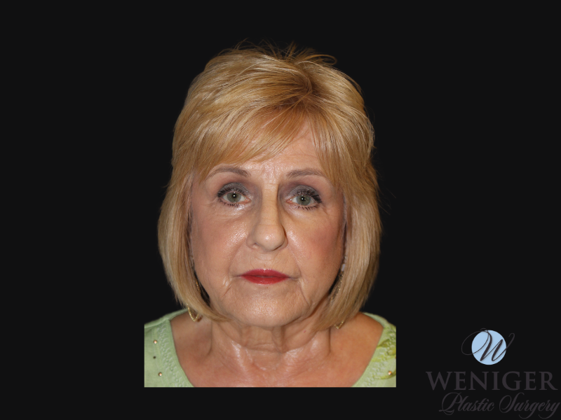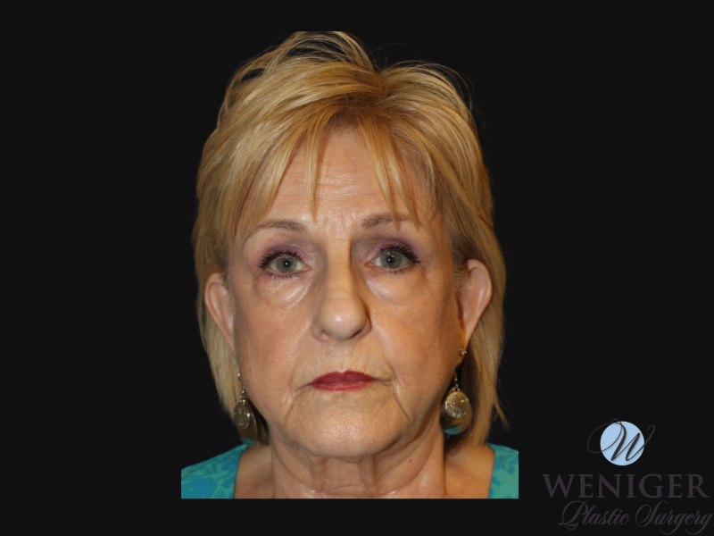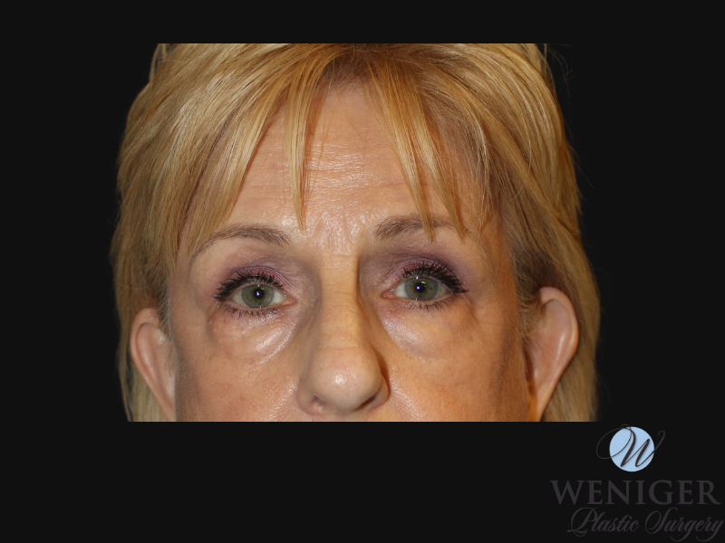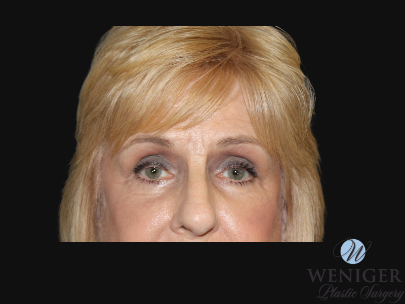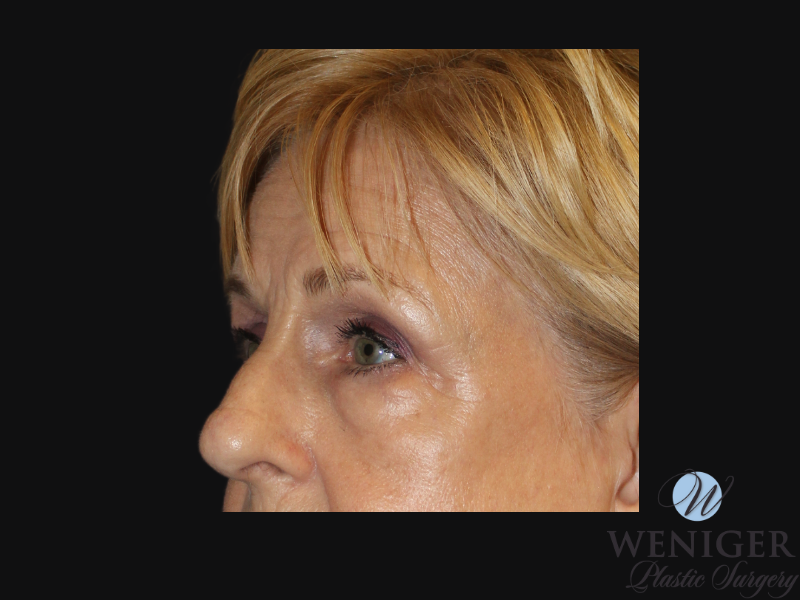 This 71 year old patient disliked the bags under her eyes, Dr. Weniger performed a lower blepharoplasty with fat grafting for contour.