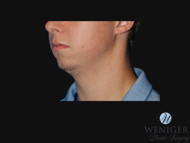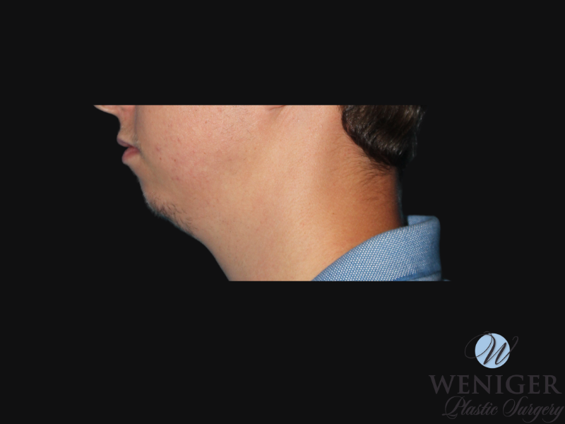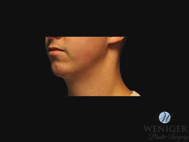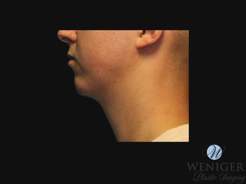 This 26 year old patient had concerns with the lack of chin projection and slight fullness to the chin/jaw area. Dr. Weniger placed a chin implant and did liposuction to the jaw area for contouring.