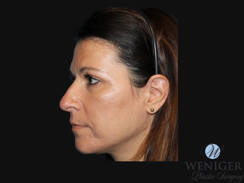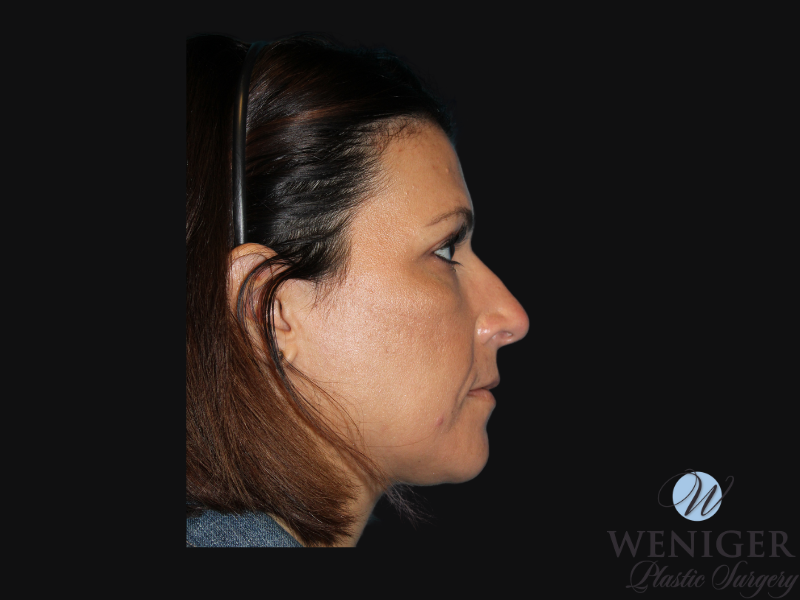This patient disliked her side profile due to the “hump” on her nose, so Dr. Weniger performed a rhinoplasty to address her concerns.